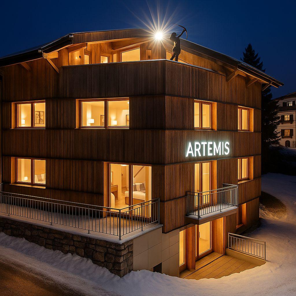 Upon entering Chalet Artemis, you will take the lift to the top floor, home to the open-plan living room and dining area which brings together old and new - Austrian sublime meets 21st century wine wall. A large balcony overlooks the village with a statue of Artemis herself keeping watch over the resort. Gorgeous designer sofas, stunning works of art, and an open log fire define the upstairs living area, which is the perfect place to relax with a glass of champagne before dinner.
