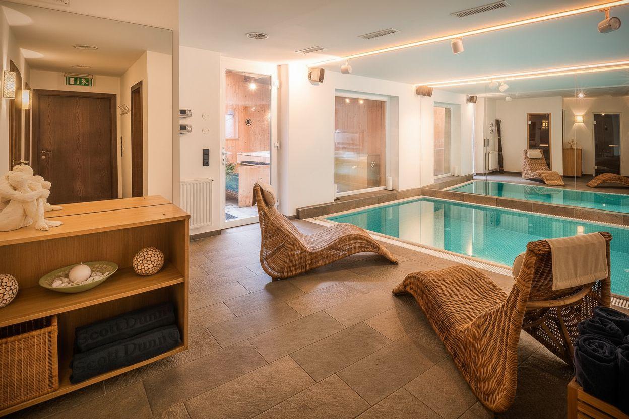 The wellness area on the lower ground floor is a fabulous highlight of this chalet. It features an 8m indoor swimming pool, wet room, sauna, steam room and an indoor hot tub ideal for easing aching limbs after a day in the mountains. There is also a massage room where you can indulge in a full menu of treatments including massages or facials.