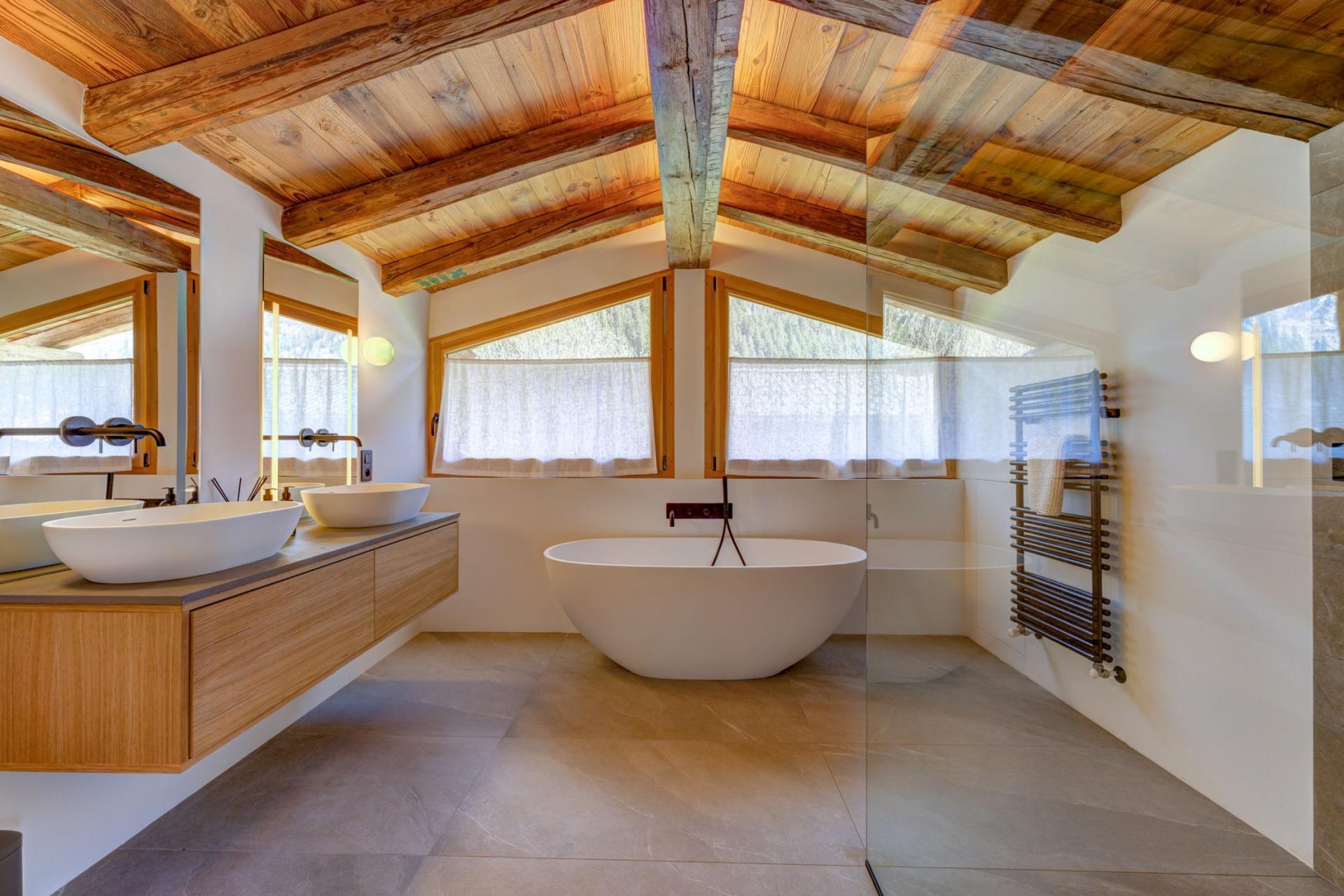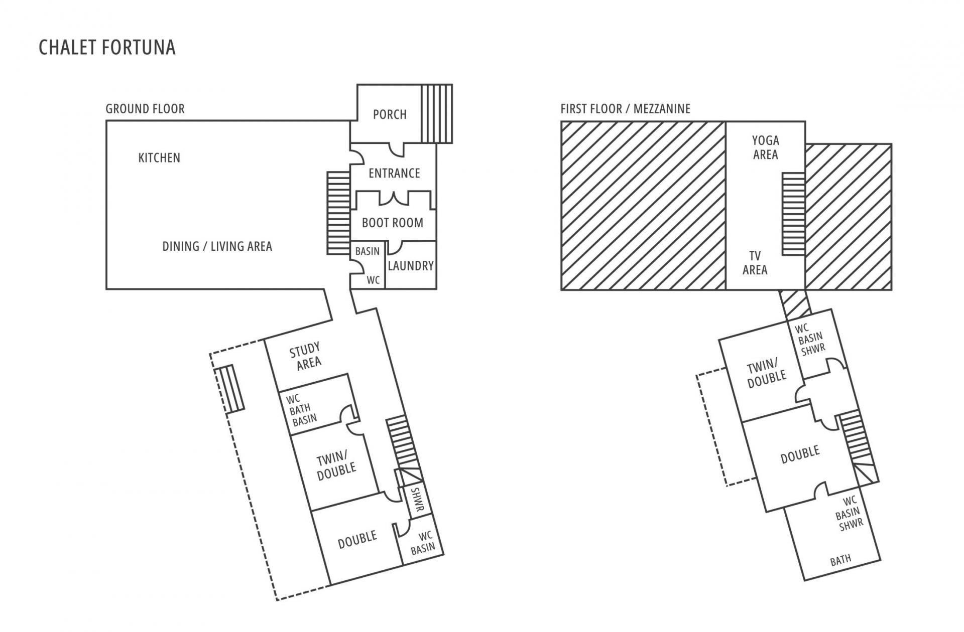 Chalet Fortuna accommodates 8 guests across four en-suite bedrooms, equally split between the property's two floors. Decorated with whitewashed walls and exposed wooden ceilings, the bedroom's interior design falls in line with the rest of the chalet's style. Large windows bring light from the outside into each room, whilst two bedrooms also benefit from a shared balcony for additional luxury. Two of the four double rooms also have a twin option for guests requiring flexible configurations.
