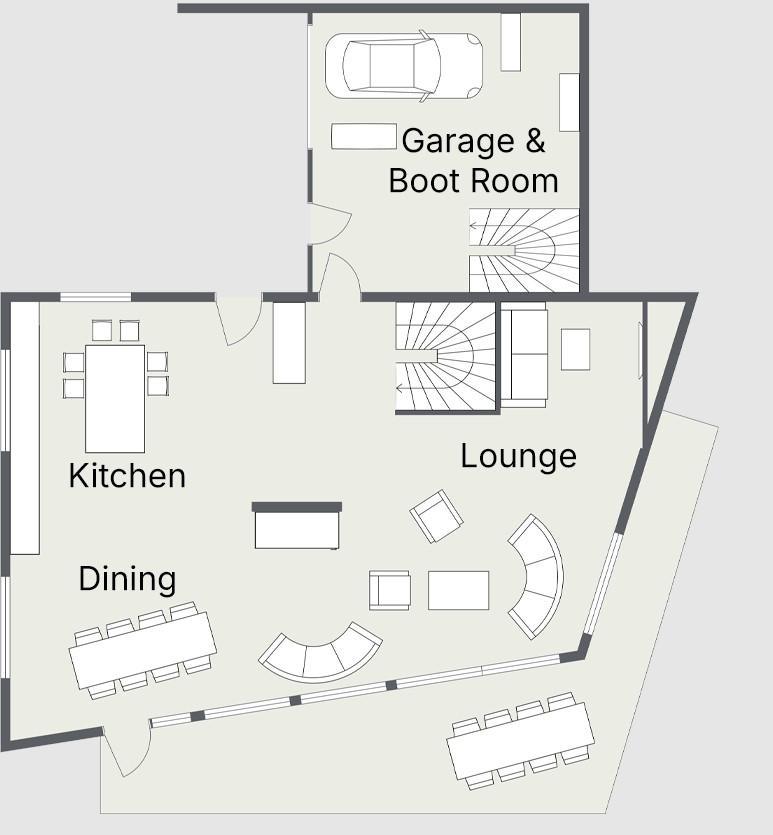 Throughout your stay, any summer activities equipment can be easily stored in the boot room. Laundry facilities as well as garage and outdoor parking are also available at the chalet.