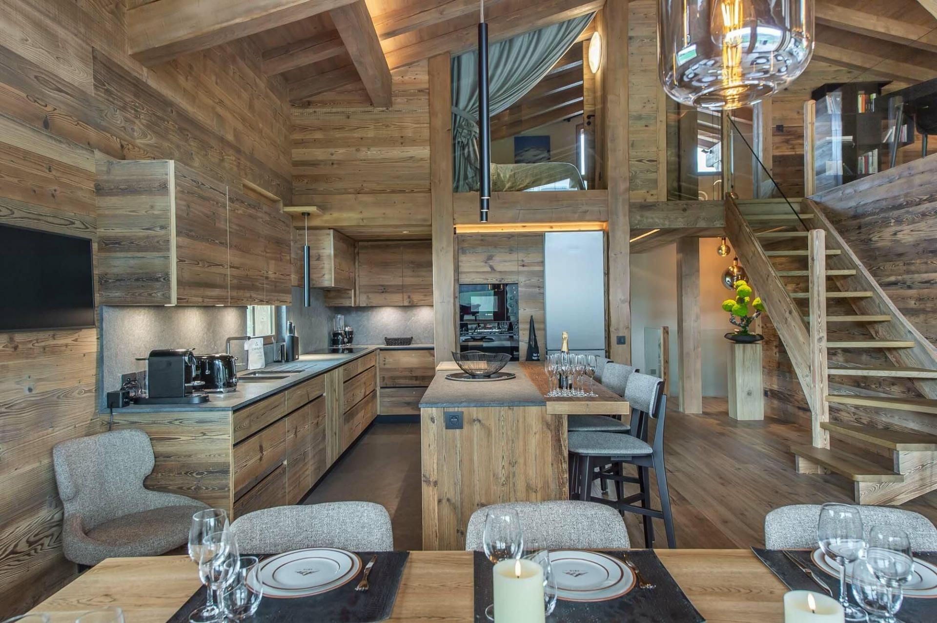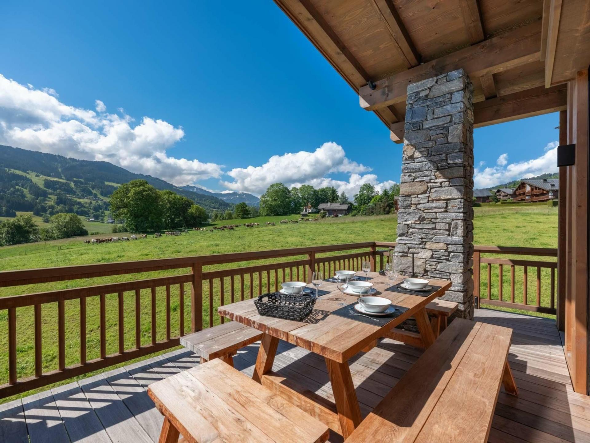 During your luxury summer holiday in Megève, guests can also step out onto the balcony where there is an outdoor table. Soak up the warm weather and dine together in the sun. Additionally, Chalet 4810 also boasts an outdoor lounge area in the garden. Here the adults can socialise with a few drinks whilst watching the kids play games together.