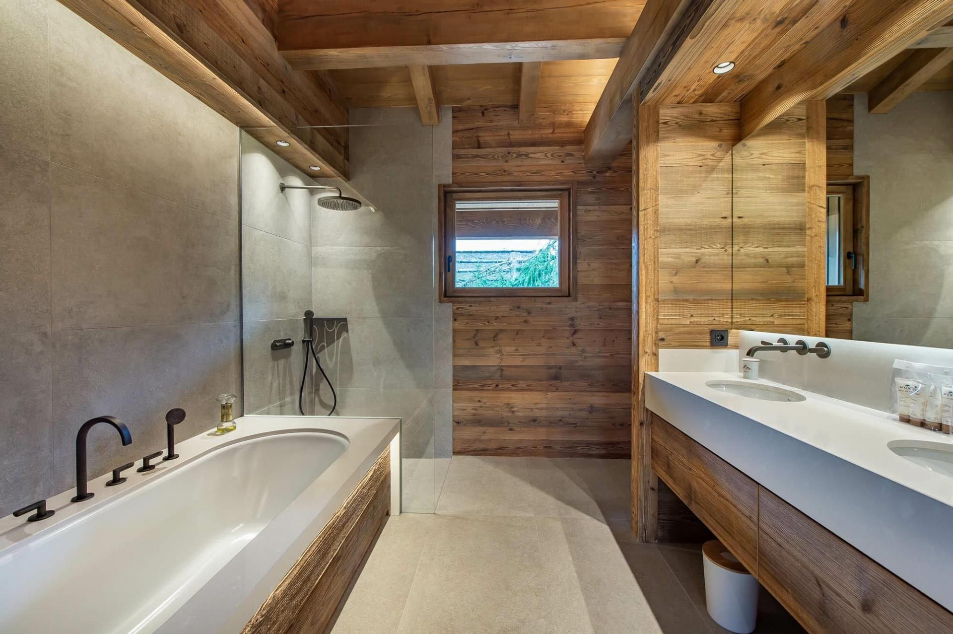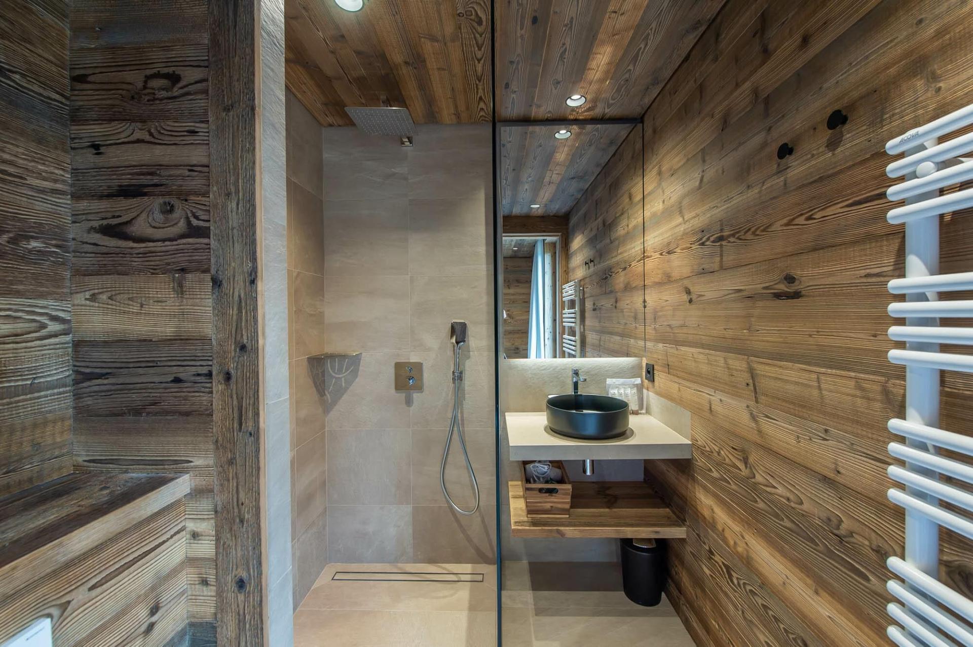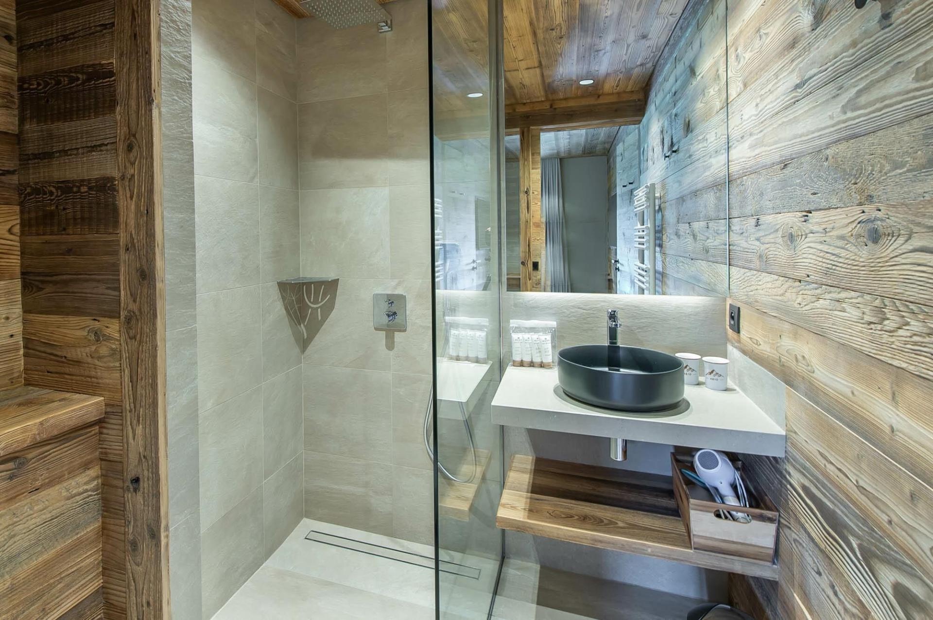 The six spacious bedrooms are located across the three different floors within Chalet 4810. The master bedroom can be found on the first floor. Epitomising luxury and comfort, this bedroom offers an en-suite as well as access to a balcony. As the sun begins to set, guests can take in the fresh mountain air and refreshing evening views. Throughout Chalet 4810 there are four other double en-suite bedrooms that all bring elegant alpine designs, however, some are also elevated with terrace access to further enhance your summer stay. The final room is a twin bedroom that shares the en-suite facilities with one of the double bedrooms.