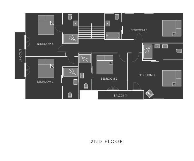 Five bedrooms can be found within Chalet Kerasia, sleeping up to 10 guests. All five bedrooms are double rooms that are partnered with en-suites. The bedrooms have a homely vibe, whilst still carrying through the elegant wooden designs of the rest of the chalet. Slanted ceilings give the rooms a spacious feel. Four of the five bedrooms can also be configured into twin rooms to cater for different groups. The flexibility of the rooms allows Chalet Kerasia to be an attractive option for corporate trips. Most of the bedrooms are also elevated by access to shared balconies.