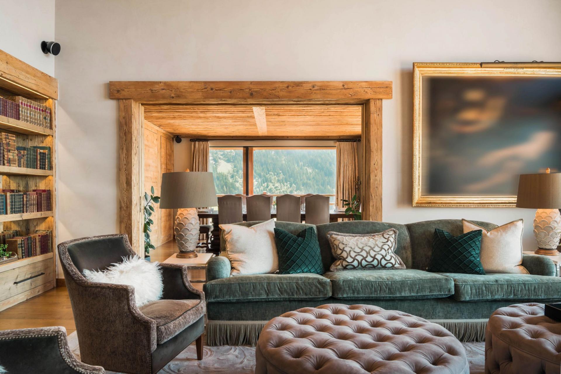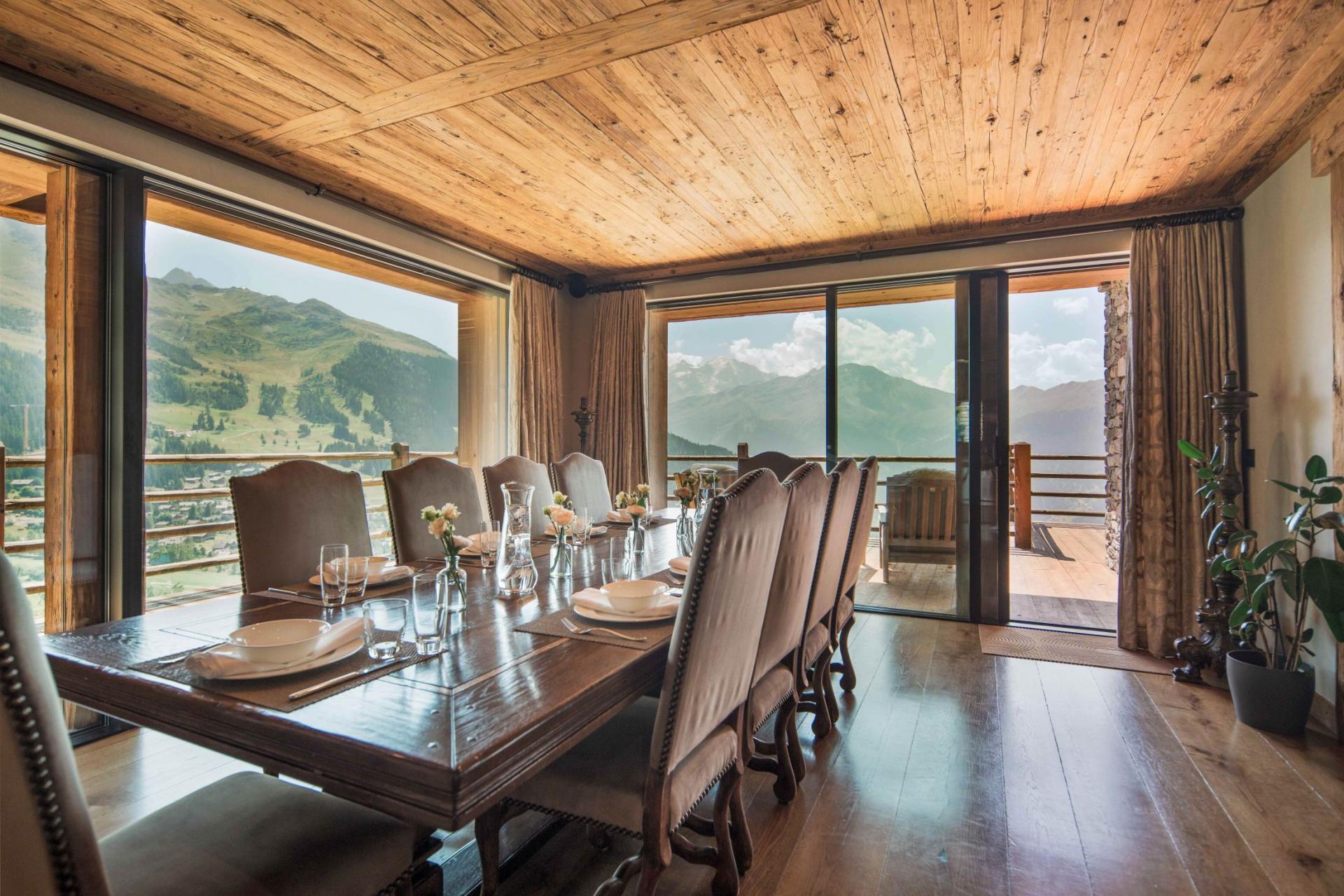 The two chalets of The Alpine Estate are connected by a small courtyard, allowing you to easily move between the two on warm summer days. You will find several luxurious living areas, where tall, vaulted ceilings of exposed wood, stately furnishings and rustic open stone fireplaces are all on show to give an air of traditional Alpine style with some contemporary extravagance. Both chalets feature individual dining areas in open-plan spaces with their lounge areas, with the dining table of Chalet Sirocco able to be extended to seat 20 guests, allowing all members of your group to feast together. Floor-to-ceiling windows open out onto vast south-facing terraces and balconies, where you can enjoy beautiful mountain panoramas long into the evening while bathing in the gorgeous glow of the sunny weather.