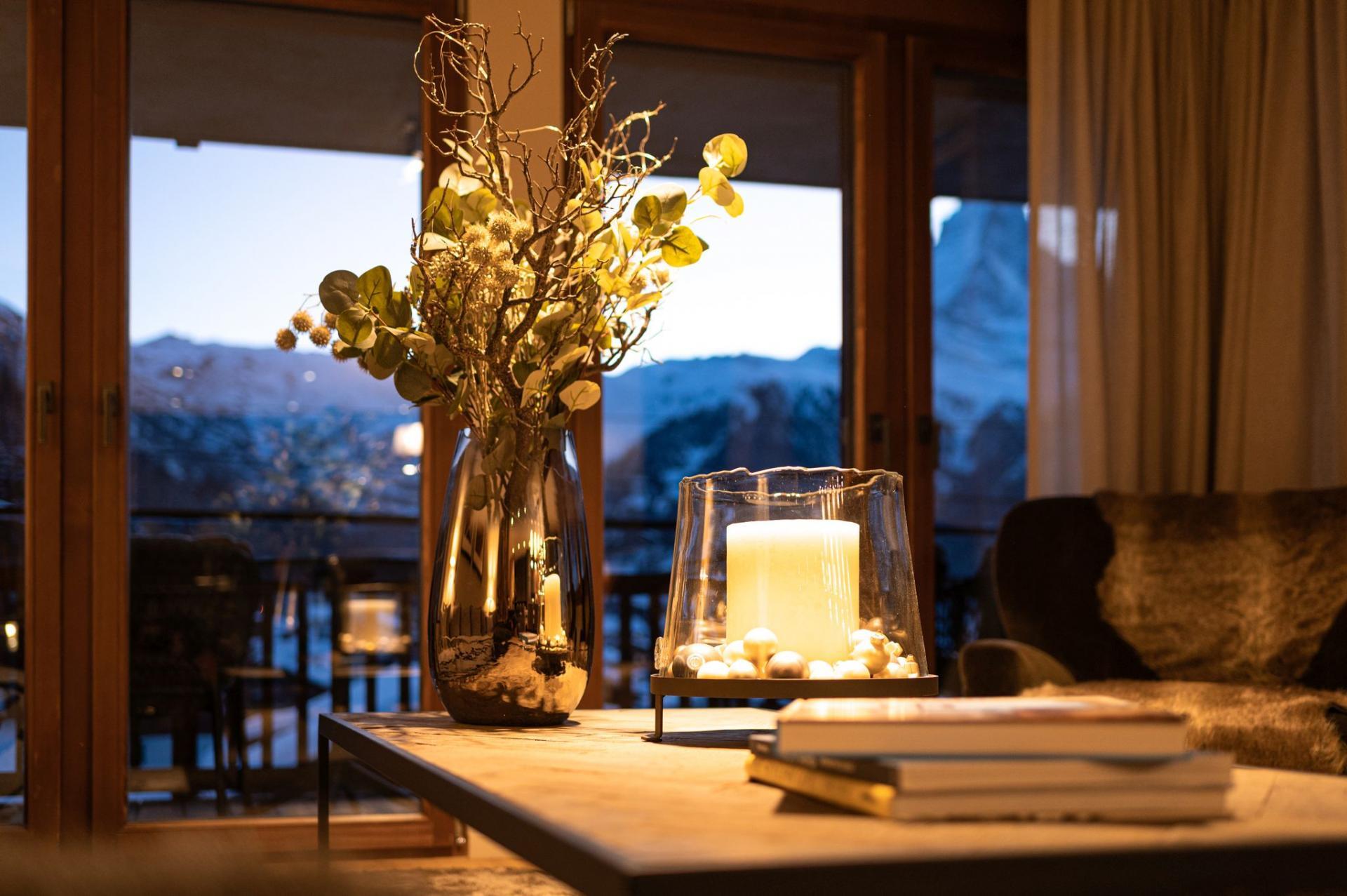 Apartment Nabucco is a stylish 4-bedroom apartment with a warm and inviting atmosphere for up to 8 guests. The apartment occupies 174m² of space across the entirety of the first floor of a building in the centre of Zermatt.