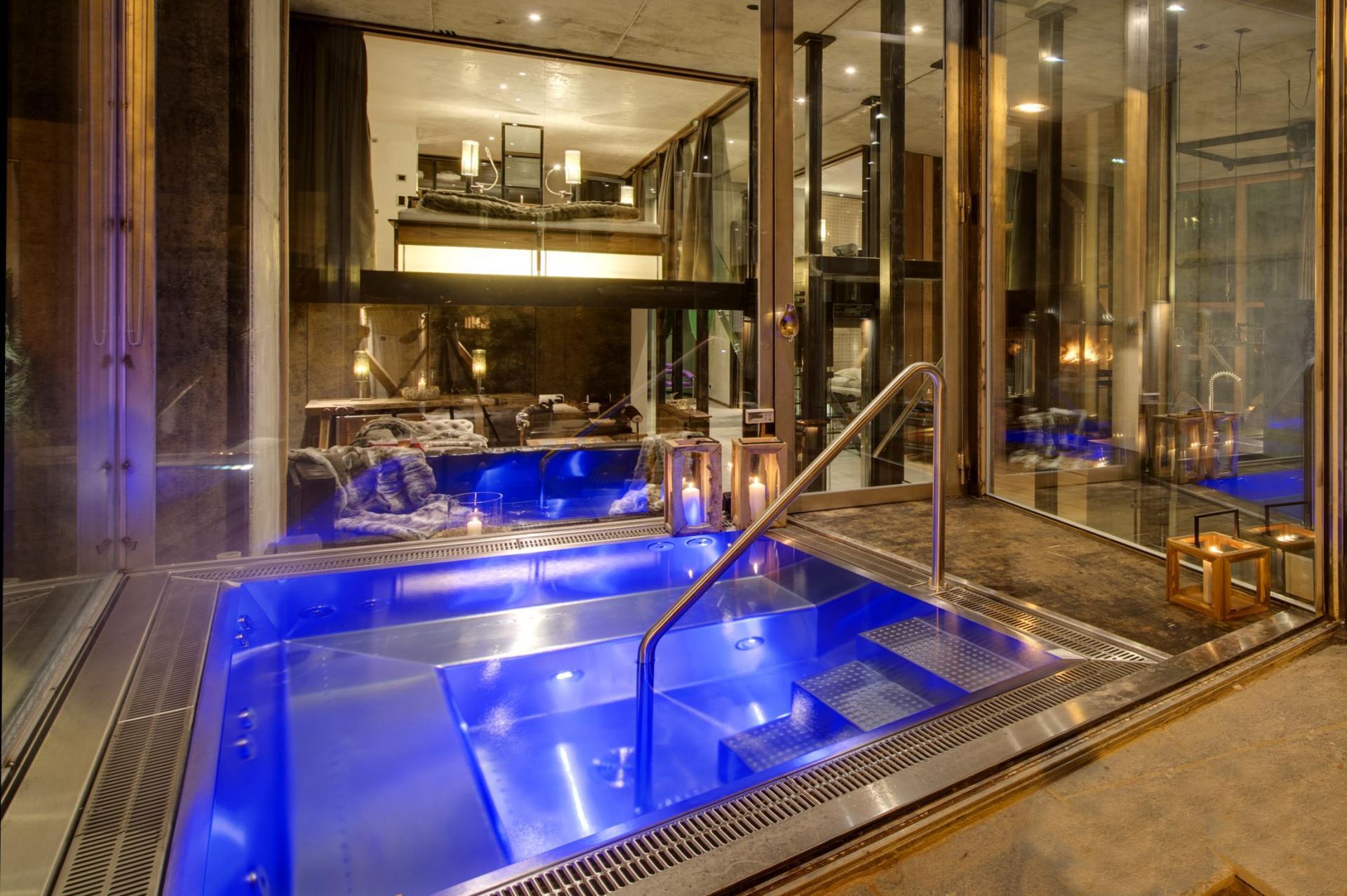 After an exhilarating day of hiking or mountain biking, guests can take in the latest movie in the chalet's dedicated cinema or relax with a glass of champagne in the indoor hot tub. The hot tub is encased by windows, allowing the spectacular back-drop to fill your senses. However, if this isn't enough, with the touch of a button the glass wall can be opened and the indoor hot tub is magically transformed into an outdoor one.